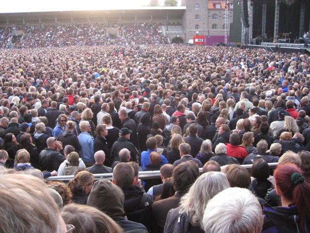 Men: Stockholm var kjempemessig og siste kvelden (søndag) var knallgod. Det var vel noe med været, stemningen og at vi hadde plasser såpass nær scenen. Det var rett og slett elektrisk i minuttene før konserten begynte, man følte virkelig at her kan alt skje. Ganske behagelig med nummererte sitteplasser, ingen problem å gå ut og inn etter mat og drikke heller (noe vi ikke gjorde). Folk hadde med seg kamera og fotograferte av hjertens lyst selv om det formelt sett ikke er lov.