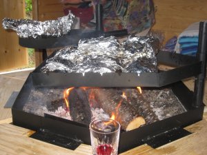 Vakker sommernatt, alt for fin til å gå og legge seg. Men i morgen er også en dag og den skal bli varm og fin i følge informerte kilder. Da bør man vel komme seg i seng for ikke å gå glipp av den. Tilbragt aftenen i en av øyas grillhytter – hos Annbjørg og Odd på Solhaugen. Koselig det og god mat og drikke – nam nam.