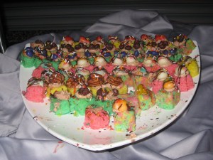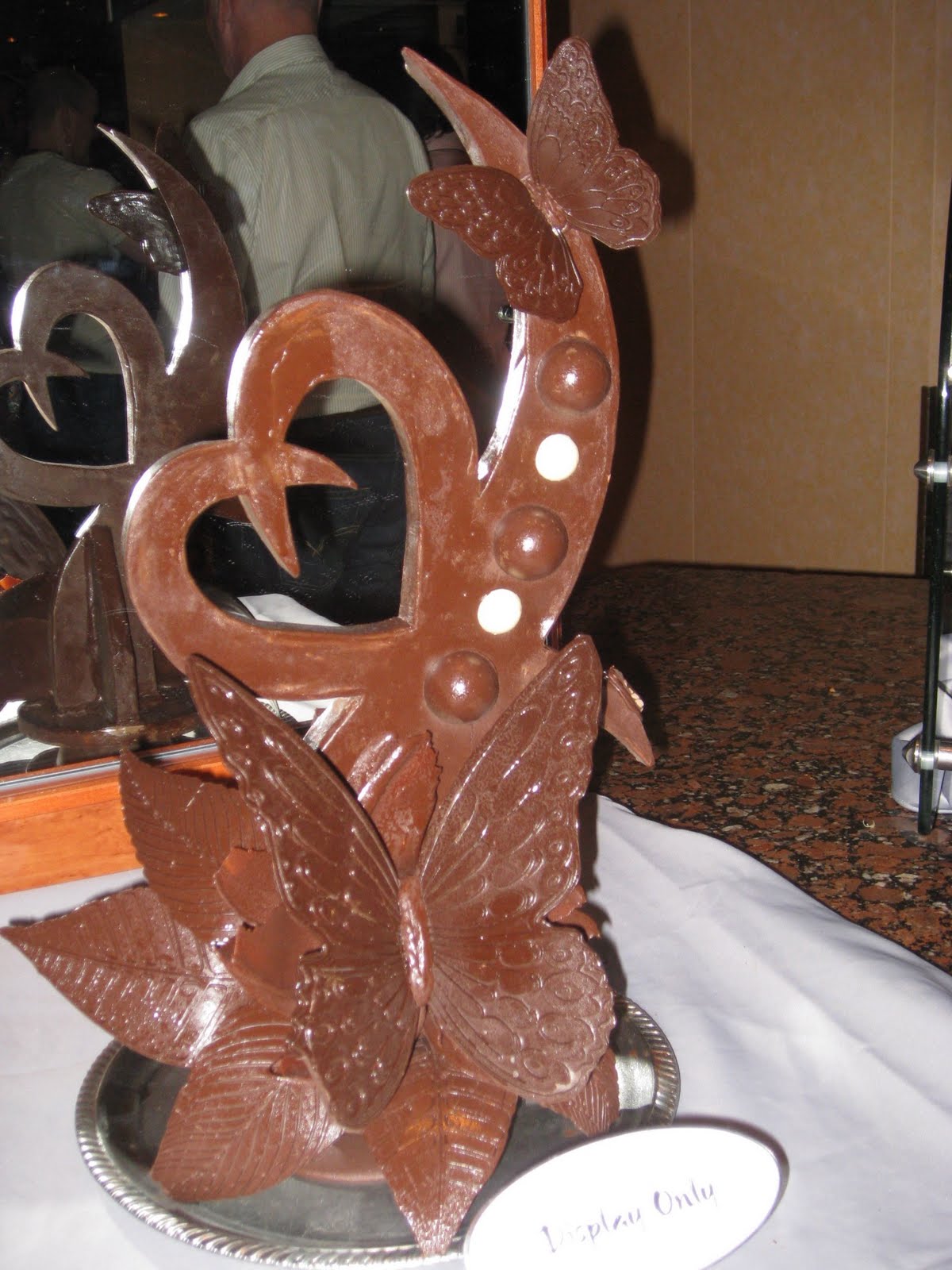 Om kvelden kl. 22.30 – 23.30 gikk den berømte sjokoladebuffeen av stabelen. For et sirkus! Folk strømmet til og virket som de ikke trodde det ble nok til alle. Det ble det for de fylte på etter hvert. Vi ventet litt før vi gikk inn til ting hadde roet seg litt. Det var små kaker og store kaker og desserter og rene kunstverk, alt laget av sjokolade. Jeg spiste ikke noe, bare fotograferte, er ikke så veldig sjokoladeglad.