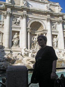 Bildet: Janne ved Trevifontenen. Vi passet på å kaste mynt over venstre skulder for å komme tilbake …