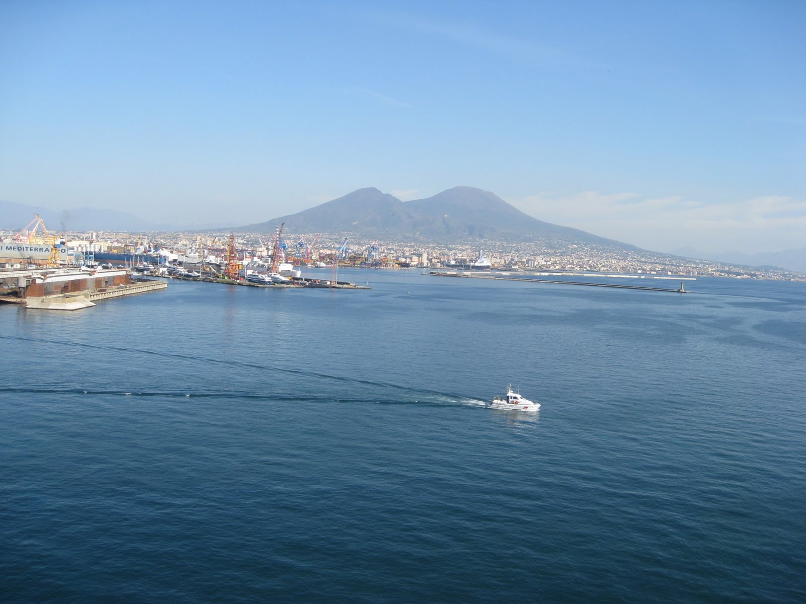 Bildet: Havna i Napoli med vulkanen Vesuv i bakgrunnen.