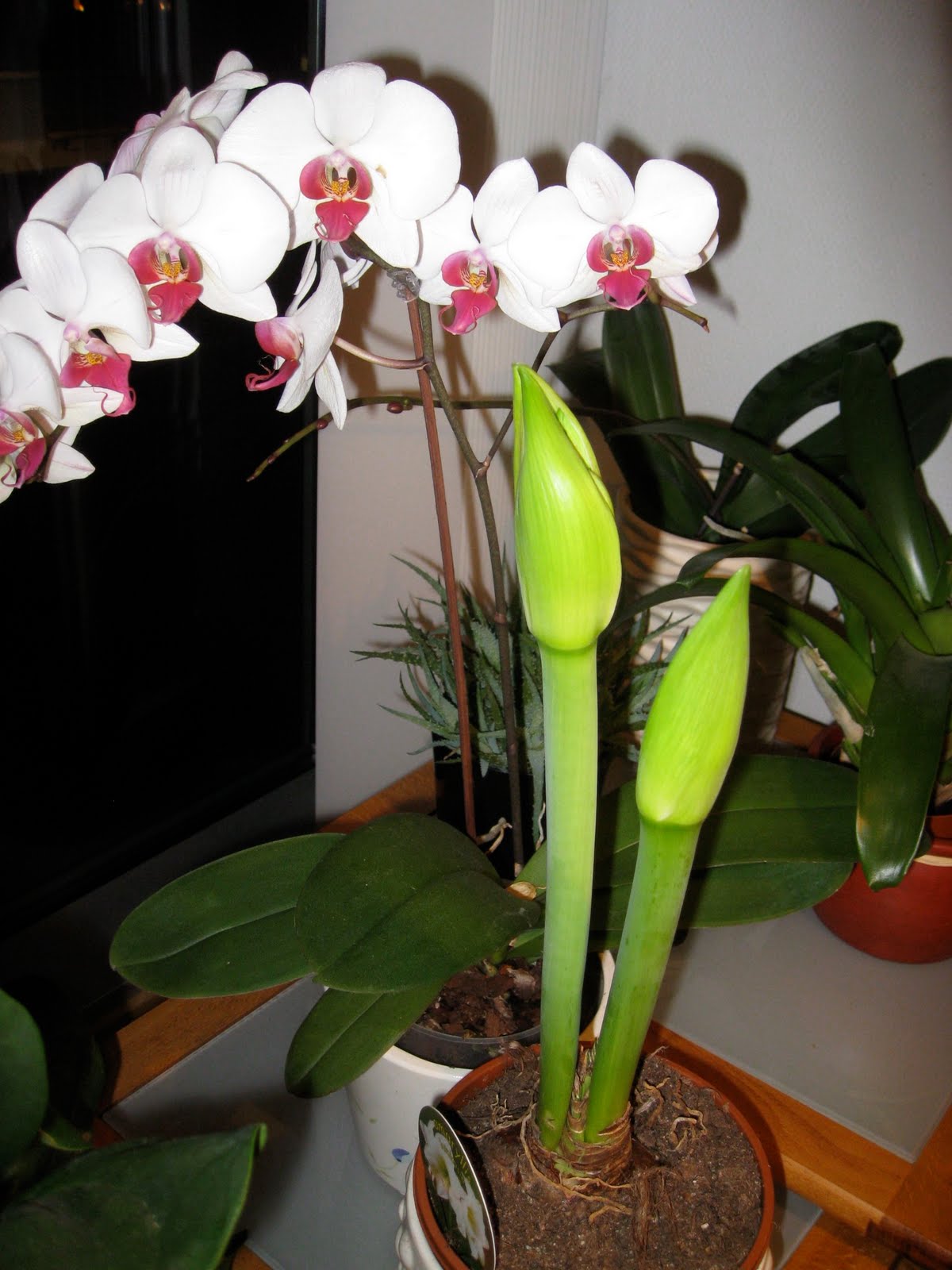 Ser på amaryllisen jeg kjøpte på lørdag og er spent på om den springer ut til julaften. Det er en av de aller vakreste juleblomstene jeg vet.