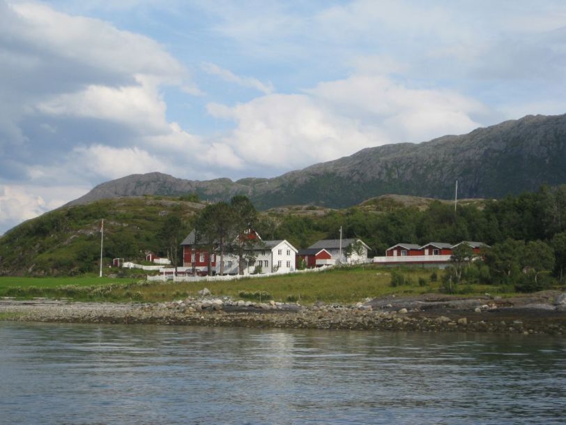 Torsdag 5. august var vi på tur sørover – ikke i ny bil dessverre, men i gamle, gode Sunny – til søskenbarntreff på kysten av Helgeland. Geografien blir bestemt av hvem det er sin tur til å stå for arrangementet og denne gangen var det kusine Unni på Mo sin tur. Selve bilturen gledet vi oss ikke til i det hele tatt fordi ingen av oss liker lange bilturer. Men vi så fram til å se en del av Norge som vi ikke har sett før eller som det er 25 år minst siden vi har sett. Det ble et kompromiss mellom å ha tid til å stanse litt og å bruke minst mulig av de dyrebare feriedagene på å sitte i bil. Vi kjørte til Fauske den første dagen. Klokka 7 om kvelden var vi nokså slitne og jeg for min del nektet å kjøre en kilometer til! Det fikk bli natt på Fauske Hotell. Litt mat i restauranten, en kald øl og motet vendte tilbake. (Det er for øvrig første gang jeg har fått servert scampi wok med brun saus!)