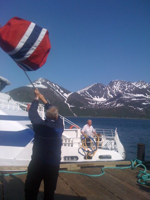 Da har vi entret hurtigbåten fra ny kai for første gang. Det var flagg og en skog av fotografer – lokale altså – og nokså opprømt stemning på kaia. Alt gikk utmerket og nå er det vel bare herlighet og glede videre. Gjenstår kaifest den 25. juni.