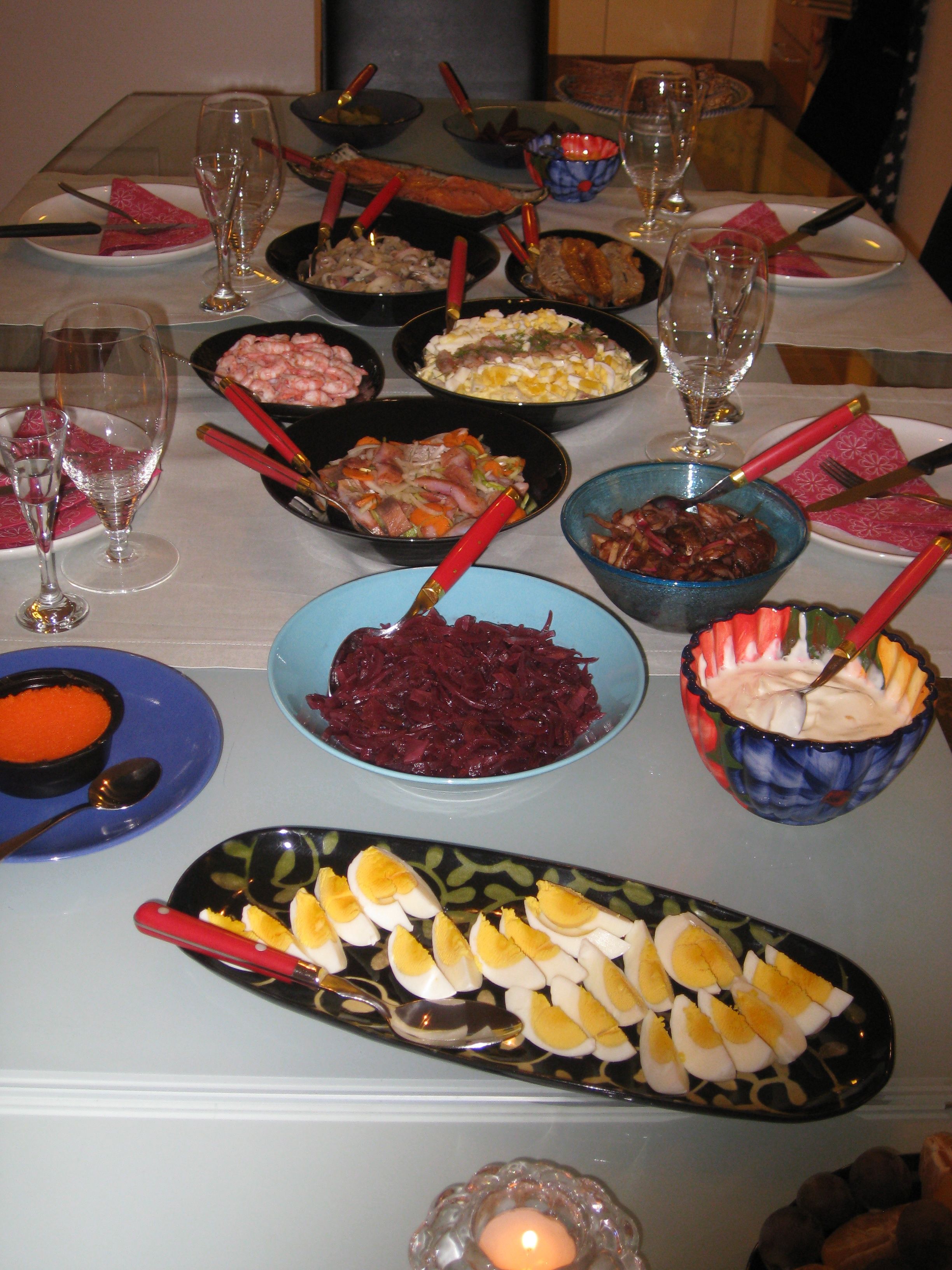 1. Gomorn frue. Dæven, det var litt av et bord!! Nam nam…ser det ut for. Om man kan invitere noen på sild? Selvfølgelig! Det er jo bare topp. Observerer selvfølgelig også de «små» – (glass) som setter spissen på silda. Og sånn blir det vel – når man nærmer seg AFP og kan nyte de voksnes gode saker.. hehe..