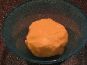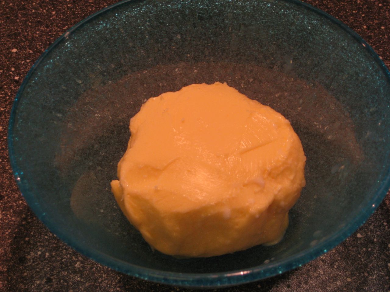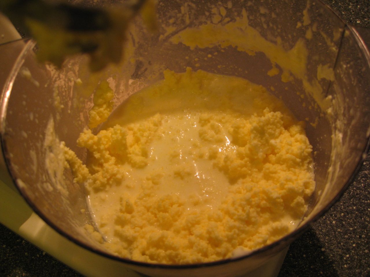 Jeg har hoppet over et trinn i prosessen i bildeserien, nemlig utvaskingen av smøret. Man skal nemlig vaske ut mest mulig kjernemelk i isvann, det har med holdbarhet å gjøre, har jeg forstått. Det ser litt grisete ut og jeg sto med engangshansker på hendene så jeg kunne ikke bruke kameraet. Samtidig kan man også kna inn litt mer salt hvis det trengs. Jeg tilsatte 2-3 klyper med Maldonsalt, det ble godt. Her er det store muligheter for å lage små porsjoner med smør med smaker man liker. Hmmm, en idè for neste selskap kanskje: Hver og en får en liten bolle med hjemmelaget hvitløkssmør, rødvinssmør, kryddersmør e.a. Snadder.