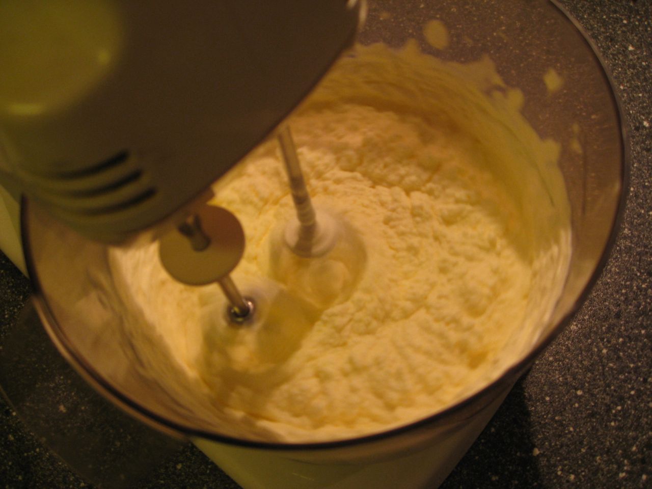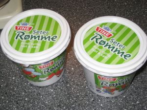 Smør er det ellers dårlig med i gamle Gnore for tiden. Desperat av smørmangel tok jeg meg et sveip i sentrumsbutikkene i ettermiddag. Smør? Nei, dessverre. Og INGEN vet når vi får det i hyllene (fårete smil fra ekspeditøren). Her var det bare en ting å gjøre – produsere sjøl. I min barndom har jeg mer enn en gang sittet på kjøkkenet på Nystrand og sett på ho Olga når ho kjernet smør. Husker tydelig hennes kjerne, den var av tre og utstyrt med en skovel av tre inni, lokk på og sveiv på siden. Olga sveivet og sveivet, noen ganger fikk jeg også lov å sveive. Det gikk ikke fort, men en stor smørklump ble det etter hvert.