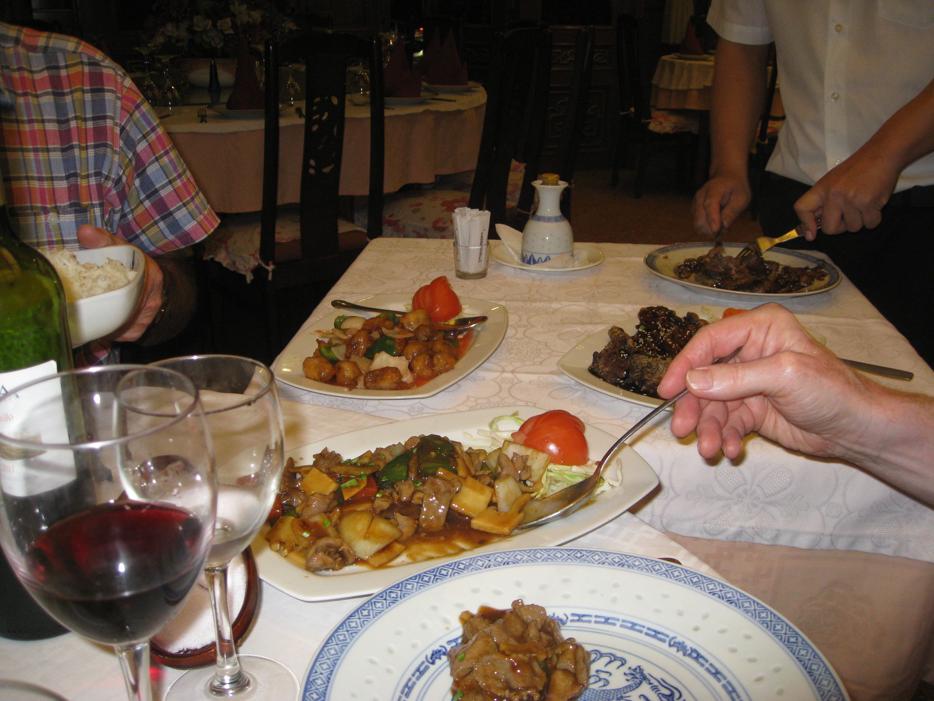 En kveld hadde vi bestilt «Peking and» på en av de lokale Kinarestaurantene. Ingen av oss hadde spist det før og nå skulle vi finne ut hva dette var. Spente og forventningsfulle troppet vi opp til avtalt tid. Som mange vil vite, må «Peking and» bestilles minst 24 timer i forveien. Jeg hadde fått oppgaven og personen i den andre enden av telefonlinjen snakket sånn passe bra engelsk. Jeg sa at jeg ville bestille til 4 personer og at vi ville spise Peking and. «Yes, yes, 4 people and 1 duck», sa den andre personen. Jeg: » Four people and all four want to eat Beijing duck»! Etter at samtalen var avsluttet var jeg fortsatt i tvil om bestillingen var oppfattet, men vi håpet det beste.