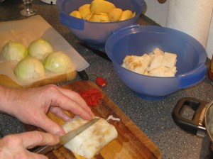 Inspirert av den herlige bacalaoen vi spiste hos Bjørg og Jan Ole på Gran Canaria, visste vi at vi snart måtte lage bacalao sjøl her i heimen. Far i huset står ved gryten når den retten skal tilberedes og godt blir det. Vi hadde slått til og kjøpt «loins» av klippfisk, produsert i Ålesund, kan vel ikke bli annet enn vellykket.