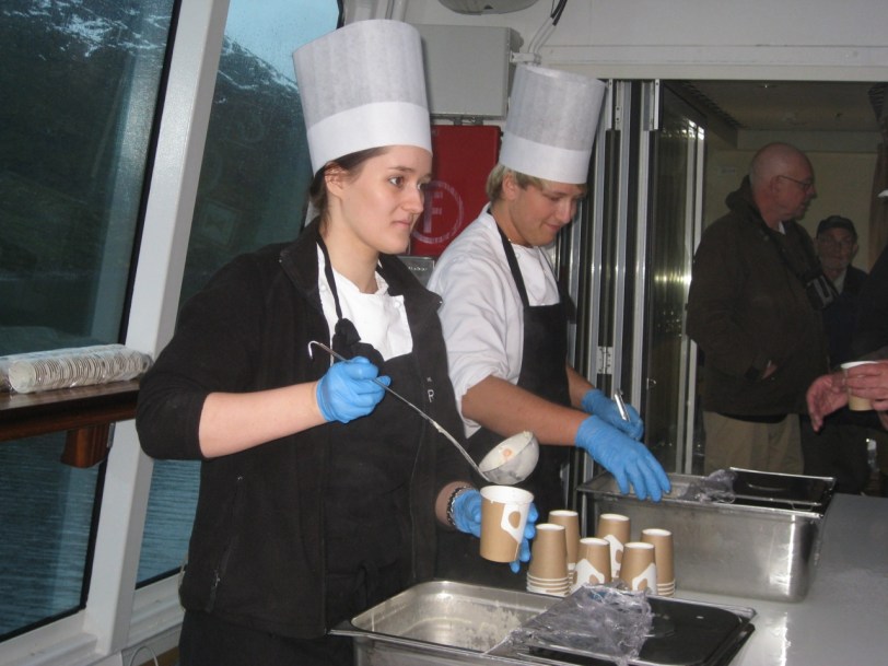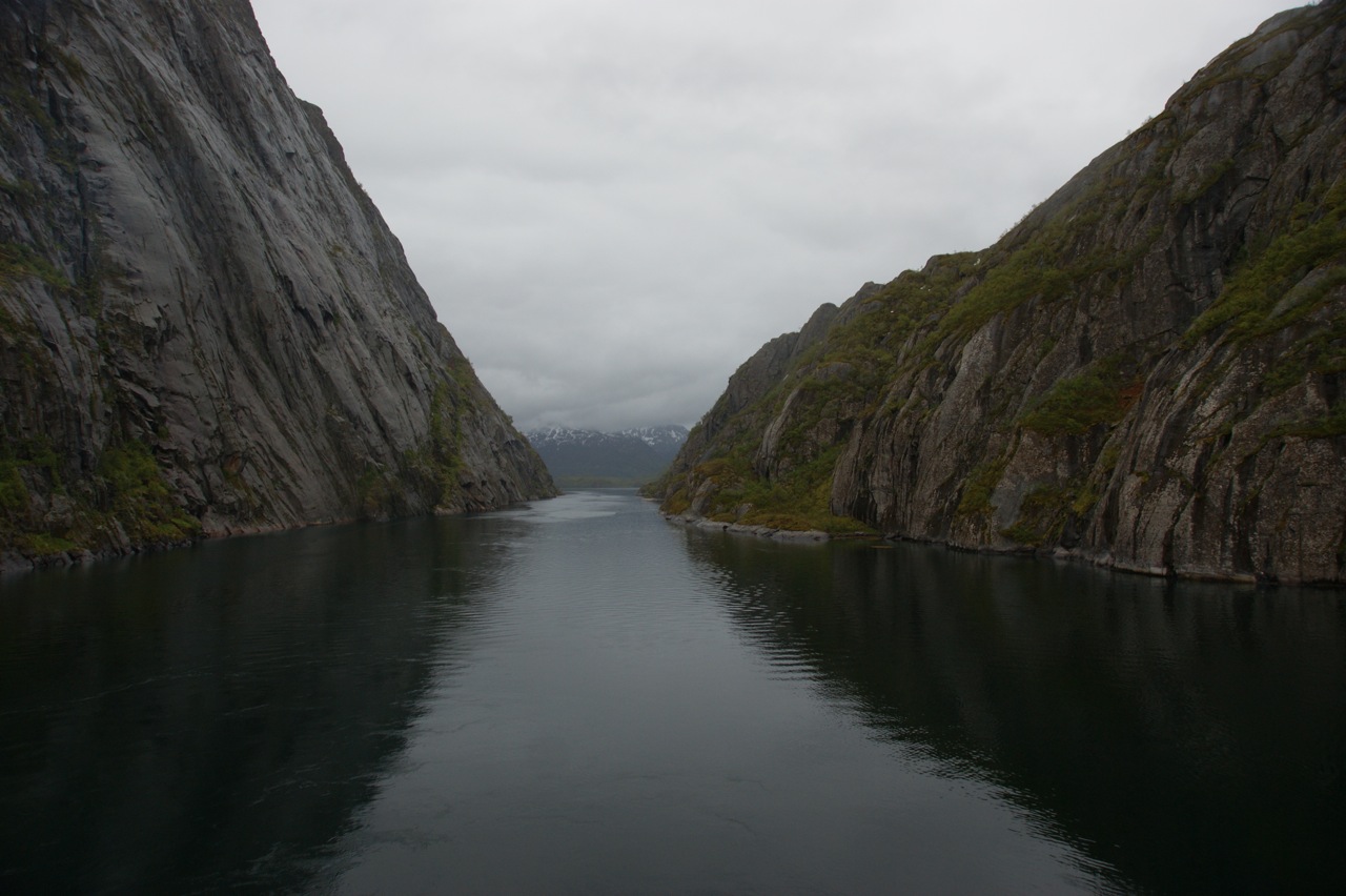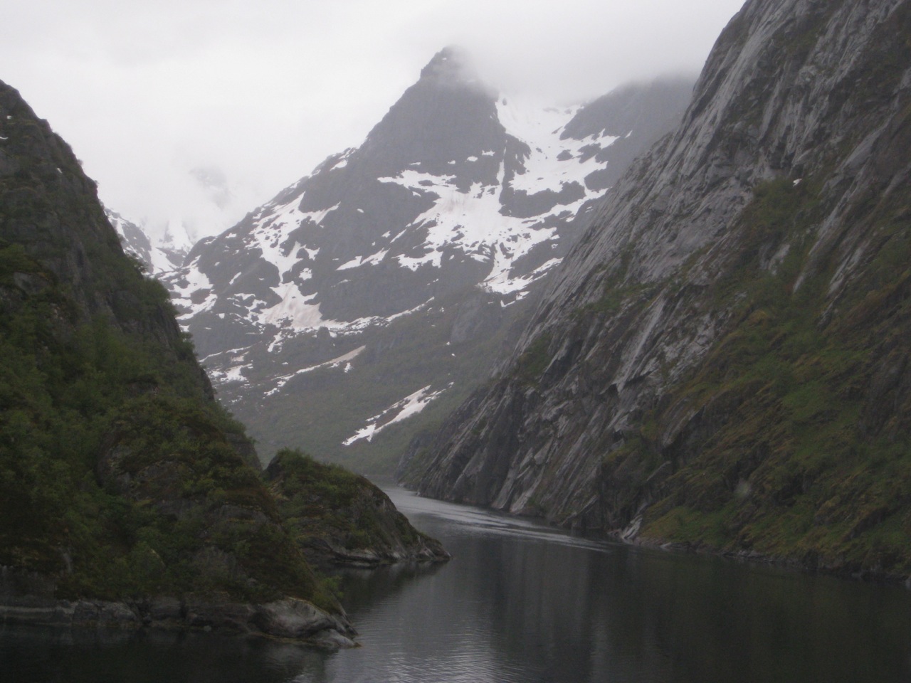 Etter en liten blund på lugaren er vi på tur over Vestfjorden. Sannelig er den også blikkstille. Det er et flott syn å se Lofotveggen nærme seg. Regn og tåke forut – skal også denne turen til Trollfjorden bli ødelagt av dårlig sikt? Etter et kort stopp i Svolvær og møte med fetter John og Wenche, stevner vi inn Raftsundet. Forventningene stiger. «Midnatsol» inne i den trange Trollfjorden er en riktig «hold pusten»- opplevelse. Det knipses og knipses, vi får servert Trollfjordsuppe, blitsene lyner, kamera går. Sakte, men med stålkontroll på hver bevegelse snur hun seg inne i det trange sundet. Jæklar!
