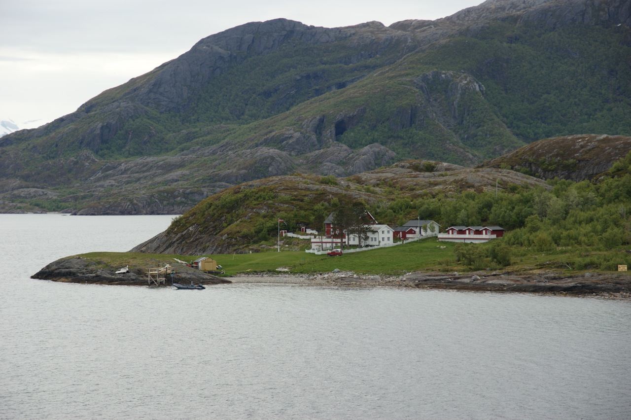 Oppe klokka 7 for å se igjen Polarsirkeløya og Buneset, hvor vi hadde søskenbarntreff i 2010. Veldig moro. Vi pleide å stå opp tidlig for å se hurtigruta passere. Nå er det motsatt, vi ser på Buneset fra hurtigruta. Møtte sørgående «Nordlys» ei stund etter det, under frokosten.