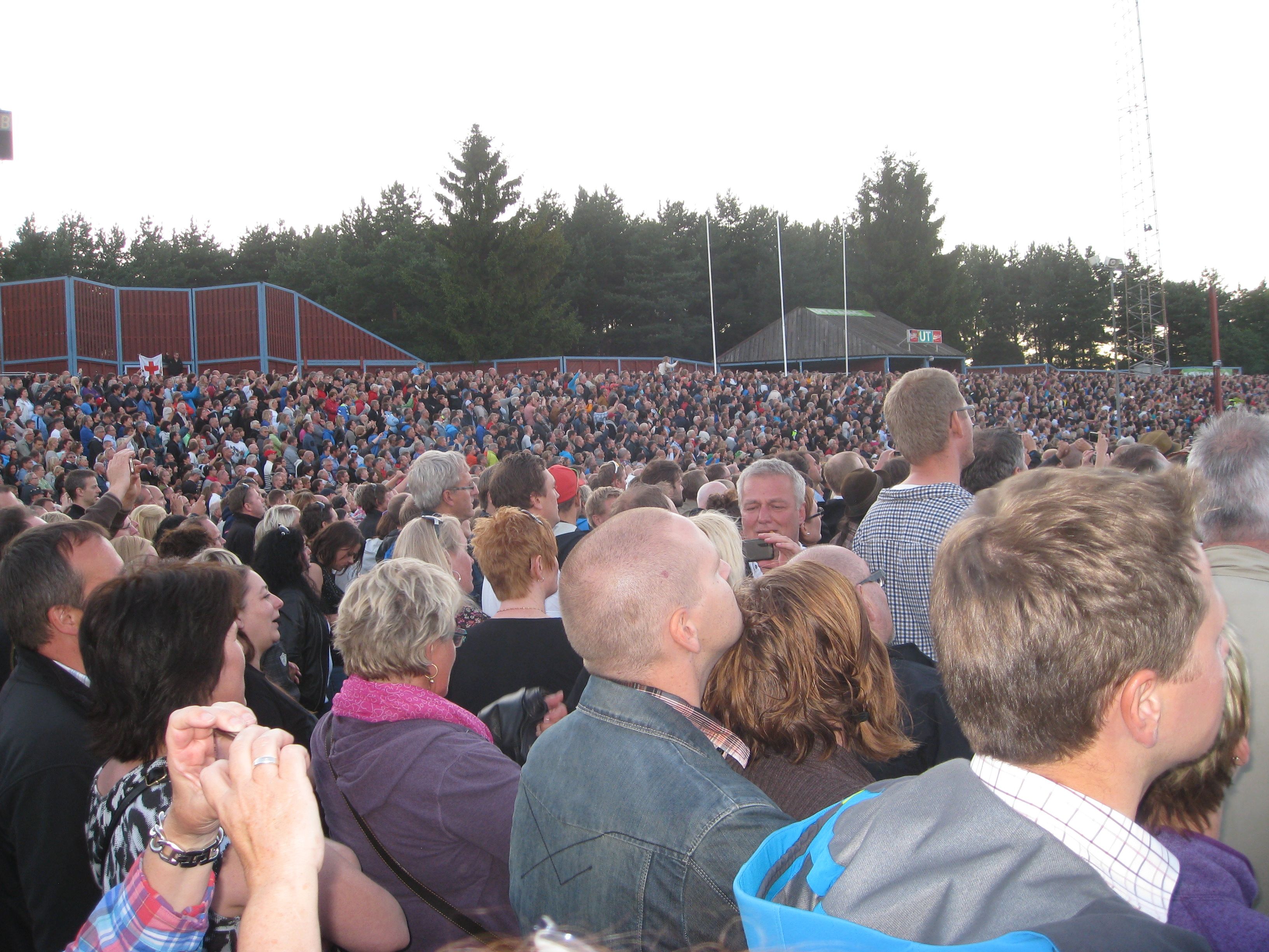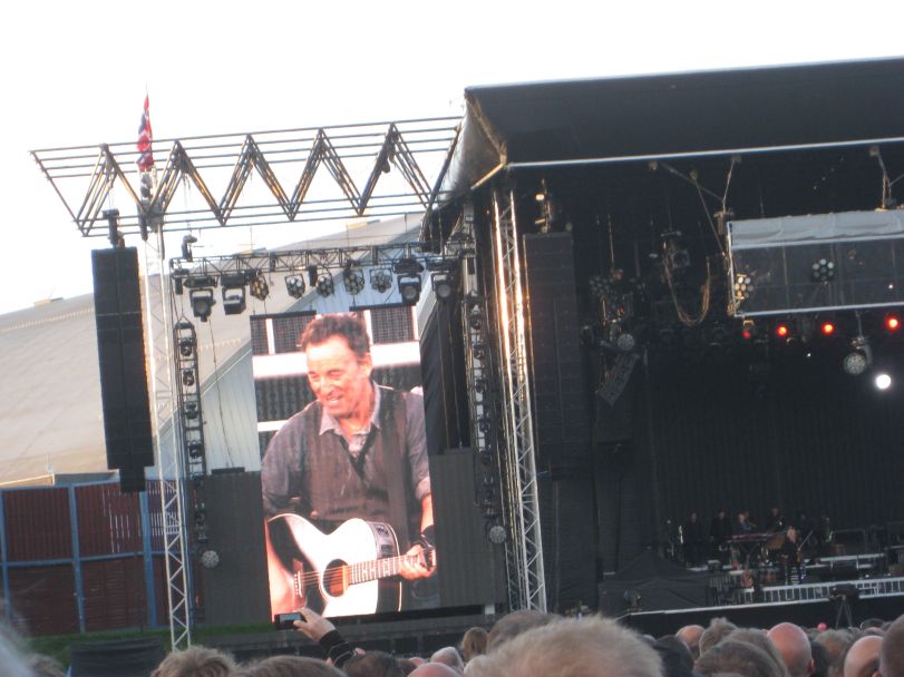 Vi innledet oppholdet i Oslo med å gå på konsert med His Bruceness The Boss Springsteen lørdag 21. juli. Strålende dag med sol og sommer, men ikke helt uvanlig slo det til med en saftig ettermiddagsbyge mens vi satt på stadion og ventet på konsertstart. Dette har vi opplevd før og burde egentlig ha tatt med oss regntøy. Det hadde vi og noen tusener andre ikke gjort så regnponchoene de solgte fikk føtter å gå på. Skal si det bøttet ned ei stund! Deretter kom sola tilbake, konserten startet og livet var herrrlig, dere! Fy faen, 40 000 mennesker samlet på et lite areale er mye! Rolf Terje med sin vonde rygg hadde litt problemer, men sto han av. Tror ikke han turde «slippe meg løs» på egen hånd he he he