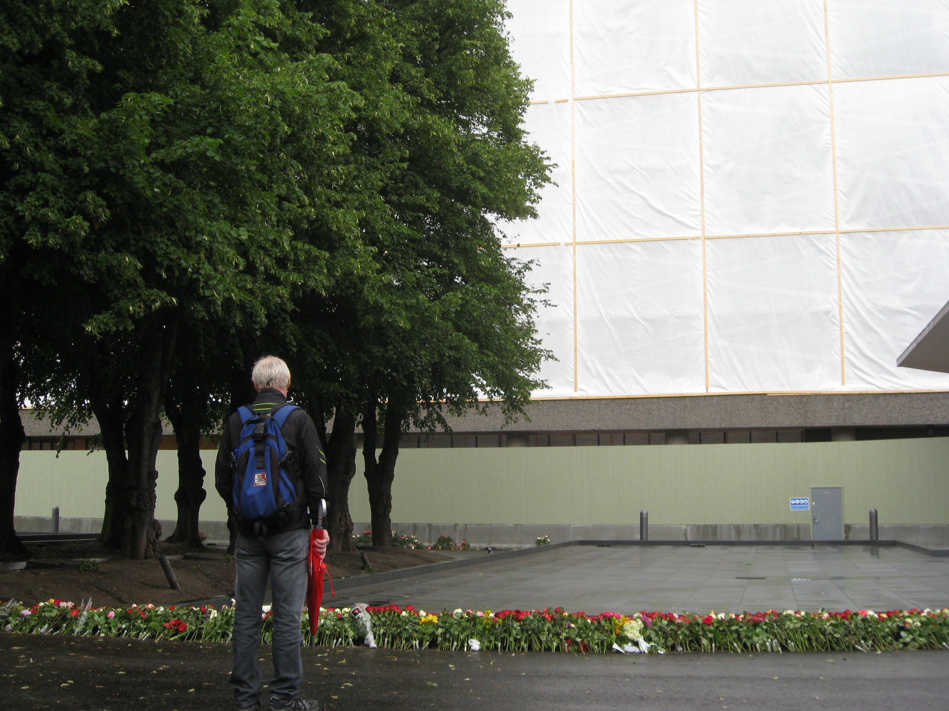 Vi fikk også med oss minnekonserten for 22. juli på Rådhusplassen. Vi gikk dit for å føle stemningen og bidra med vårt nærvær til ære for de som døde. Det føltes bra. Den dagen var en av de dårligere værmessig og det blåste smådjevler og pissregnet under hele forestillingen.