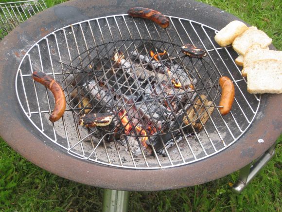 11.08.12: Ferien går mot en ubønnhørlig slutt og vi runder av grillsesongen som aldri startet.  Gassgrillen har hittil ikke kommet ut av vinteropplag, det har liksom ikke fristet å sitte ute og lage mat .. Men i går – etter at «arbeidsleiren» var lukket for sesongen (?), verktøy, maling, stiger og trykkimpregnert ryddet bort – fant vi ut at nå skal vi sannelig grille! Og vi har jo bålpanne så vi trenger ikke drasse fram den store gassgrillen, det er tross alt truende regnskyer på himmelen.