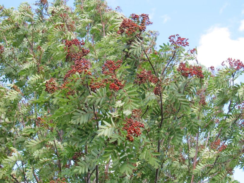 Rikelig med rognebær rett utafor kjøkkenvinduet.
