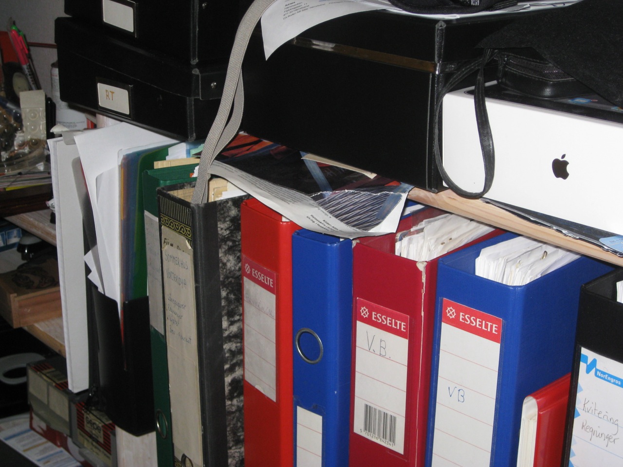 Det er jaggu ingen spøk: Etter 10 år i denne bopelen er det på høy tid med en større ryddesjau. Boder og gjesterom, skuffer og skap – her skal det kastes uten sentimentalitet! Er det ikke merkelig – straks et rom står ubrukt og døra er lukket, så blir det et roterom. Hos oss har det skjedd med vårt kontor/gjesterom. Av forskjellige grunner ble kontordelen (les: Mac-en) flyttet til stua i sommer og døra til kontoret lukket igjen – den står vanligvis åpen og er en del av leilighetas åpne areal. Jeg synes det blir luftigere slik. Dessuten – med den kvadratmeterprisen det er for leiligheter i Tromsø må man la minst mulig areal være «dødt».