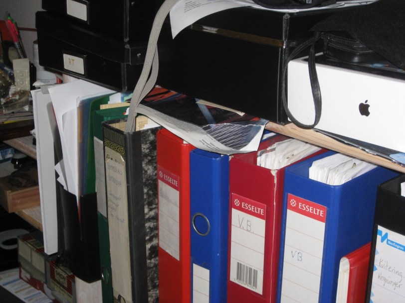 Alt skal vekk! Ulidelig stygge ringpermer hulter til bulter. VB står det på noen, det er Vorterøy Bygdelag sine greier.