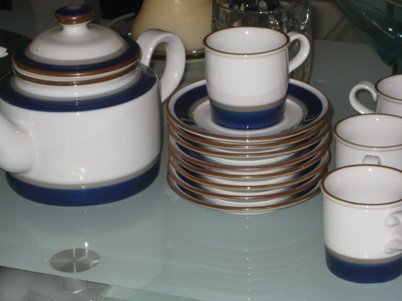 Typisk 70-talls servise. Det er «Eystein» fra Porsgrunn Porselen. Nesten uslitelig, vi bruker enda tekoppene i samme serie daglig.