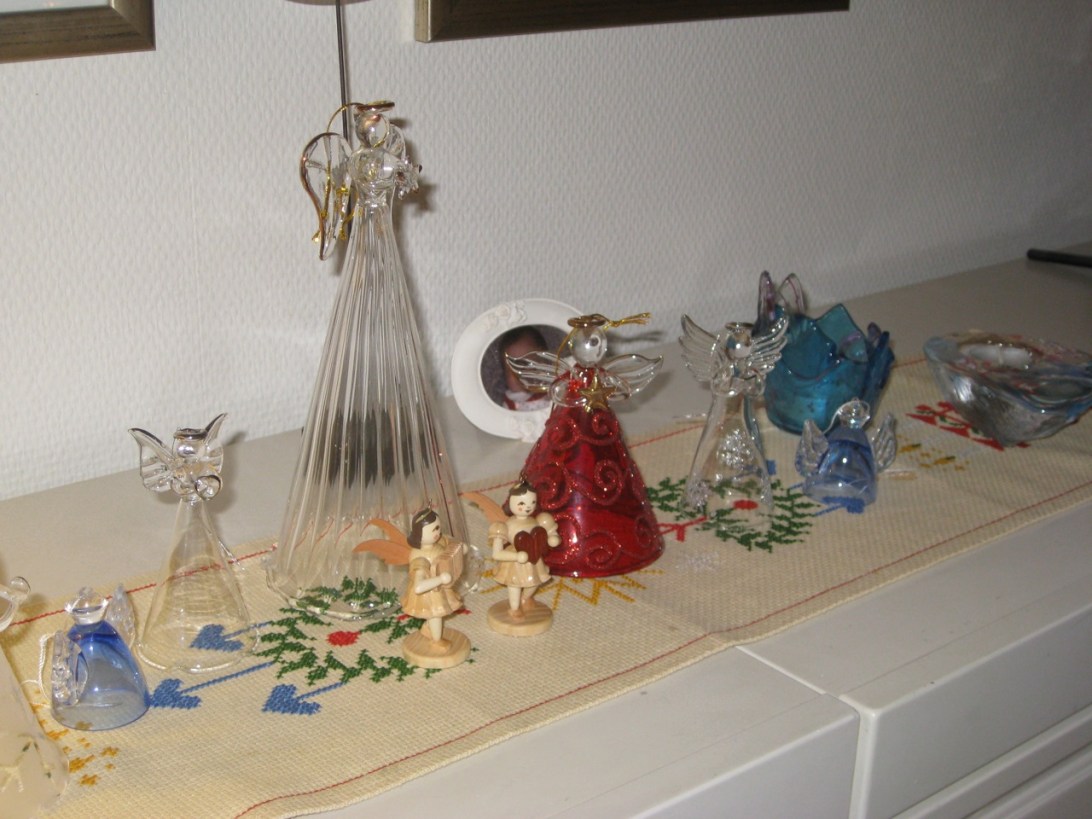Englekoret er på plass. Det samme er en liten, ekte juleengel halvt skjult i bilderamma bak.