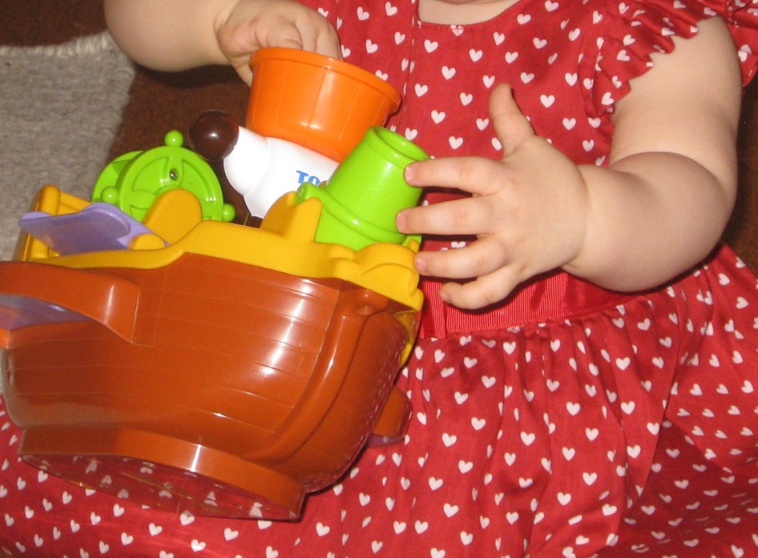 Julefryd: Ei lita prinsesse har fått nye badeleker.