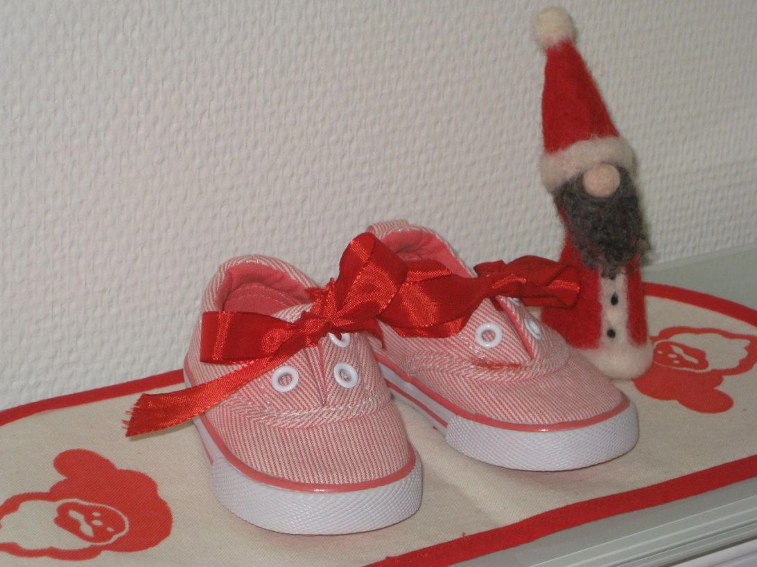 Et par røde sløyfer og vips! er barneskoene blitt en søt juledekorasjon.