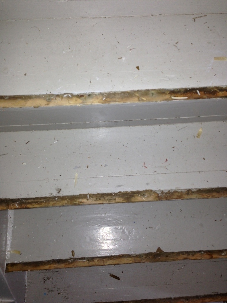 Sånn går dagan. Vi maler og maler, to strøk på gammelt panel er mye jobb. Nå har jeg fjernet trappeneser av metall så vi kan få ei penere trapp, men der må det skrapes og pusses og males først. Og gulv i loftsgang kan ikke males før vi drar, det er nemlig ingen alternativ vei ut.