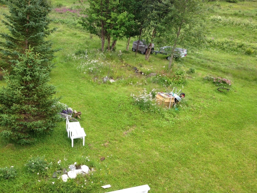 Ute gror alt over og blir enda mer villniss (les: frodig). Tror fuglene koser seg veldig med karten på ripsbuska, så det er da til glede for noen.