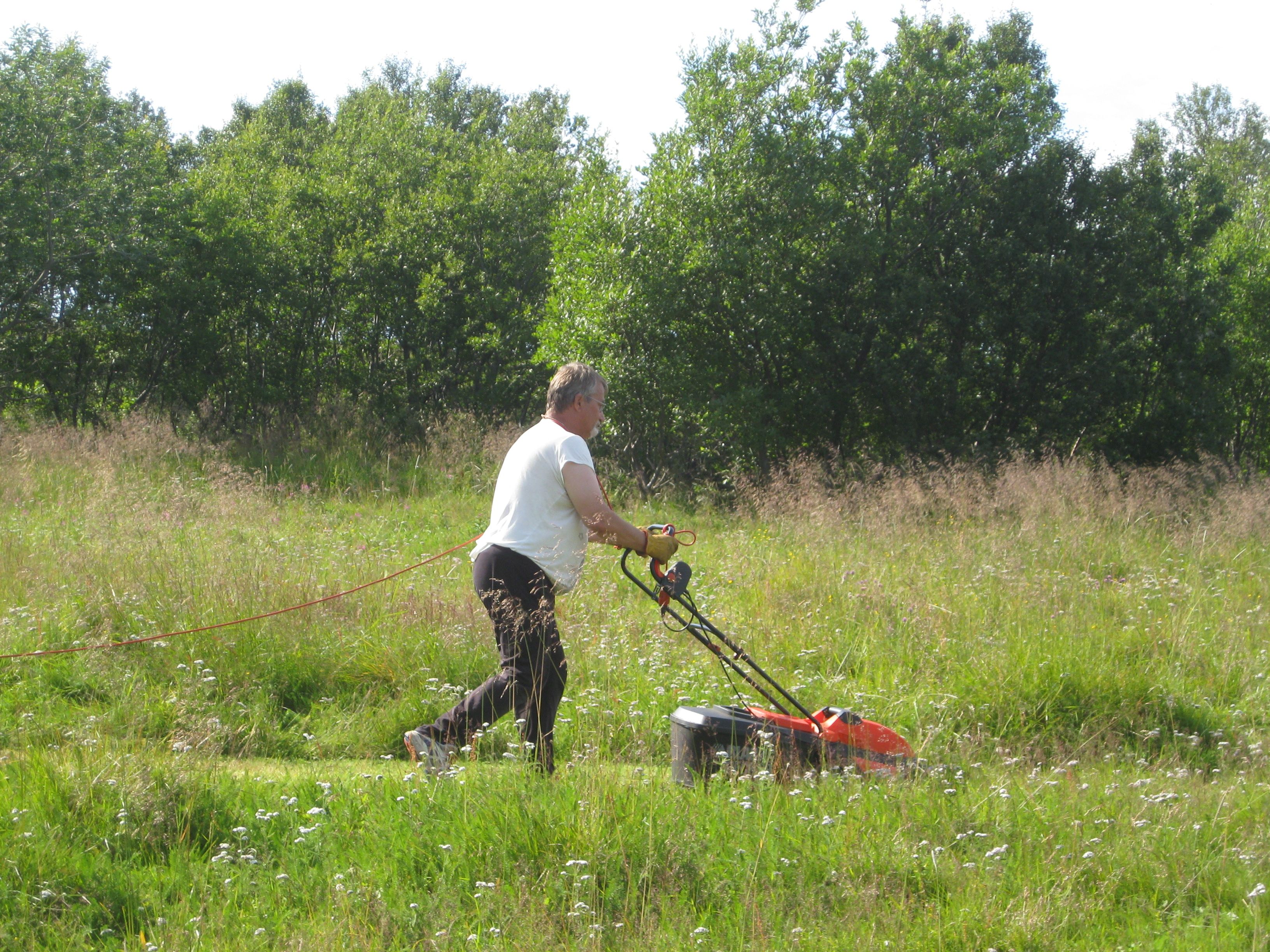 Når Troms fylkes fremste tillitsvalgte kommer og tilbyr seg å klippe gresset ditt, da vet du at det er litt for lenge sia sist! I regnvær er langt gress vemmelig å ferdes i og hyttenaboen må gå på stien tvers over vår eiendom for å komme til sin. Så tilbudet hadde nok en sterk egeninteresse innbakt. Vi takket ja uten å nøle ….