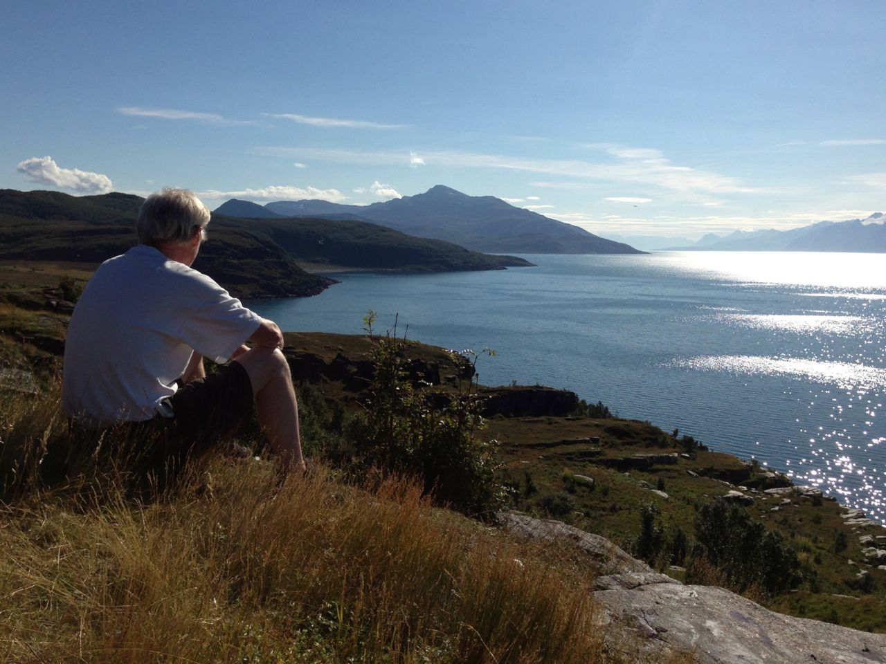 Alle disse fantastiske kveldene! Her sitter vi ute på «tropeaften», selskapet skimtes så vidt på terrassen ved huset.