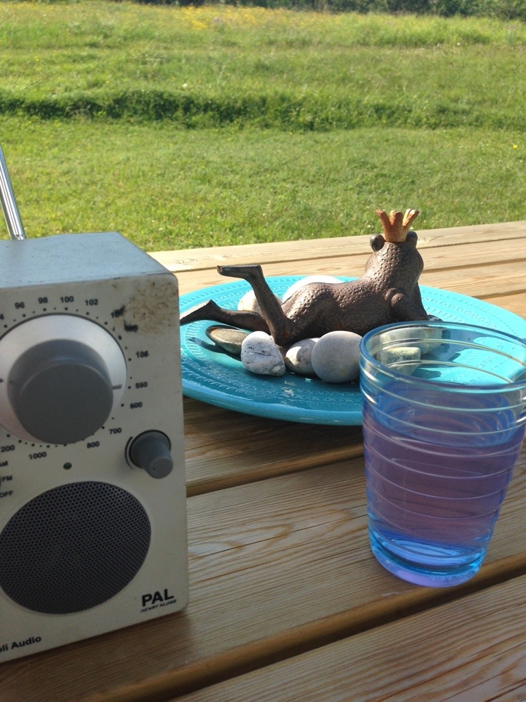 Froskeprinsen soler seg, vifter med froskelårene og venter på Kysset. Parasoll, radio og kald drikke – det er bare å kule’n.