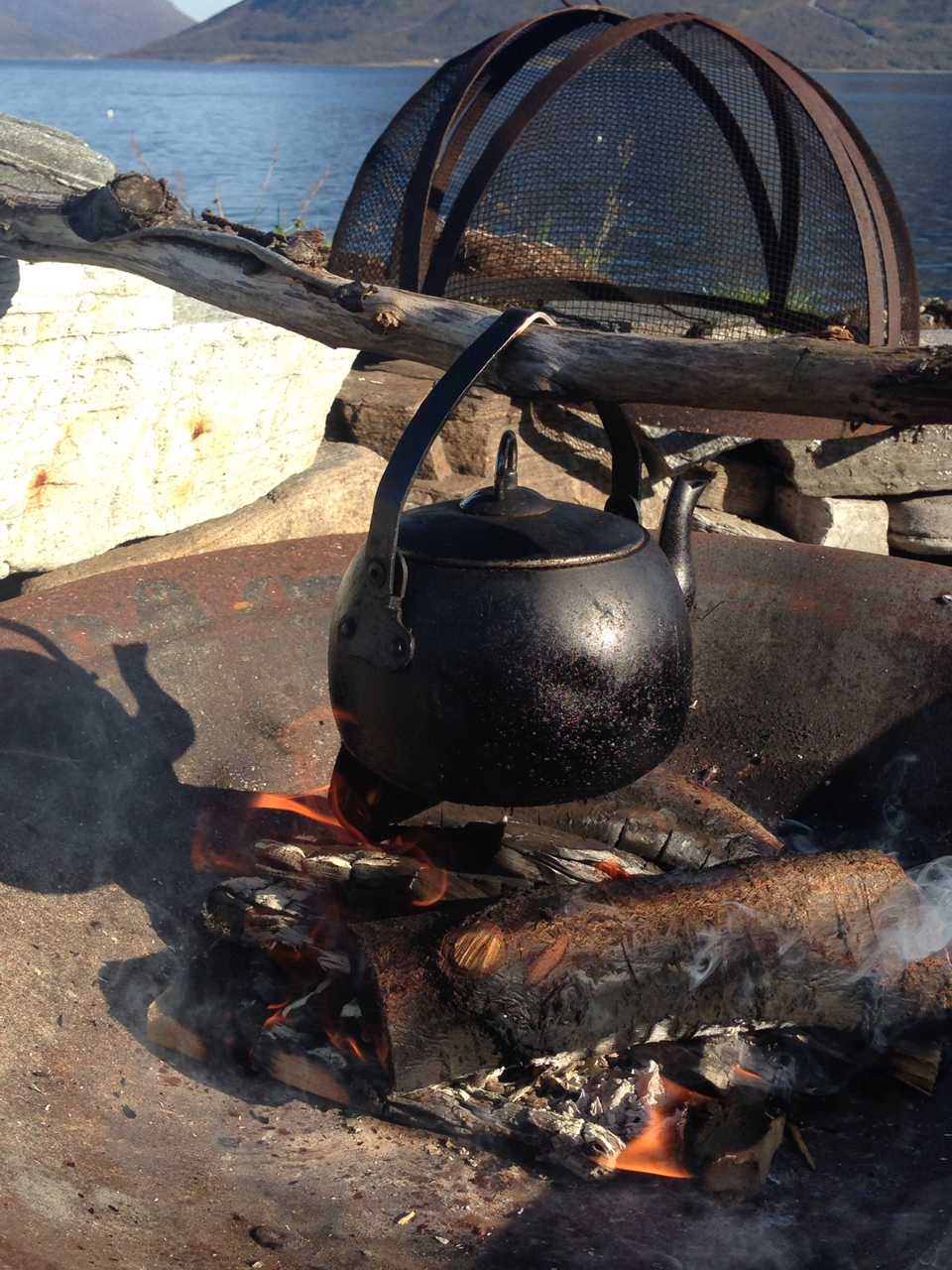 Lunsjkaffe på gang. Det klaffet med usedvanlig vakkert vær ei uke i september når vi var på sommerhuset. Om dagen strålende sol og lunsjer utendørs, om kvelden flott nordlys. Jeg var ute og øvet meg med kameraet. Har nok en vei å gå der, men moro å prøve.
