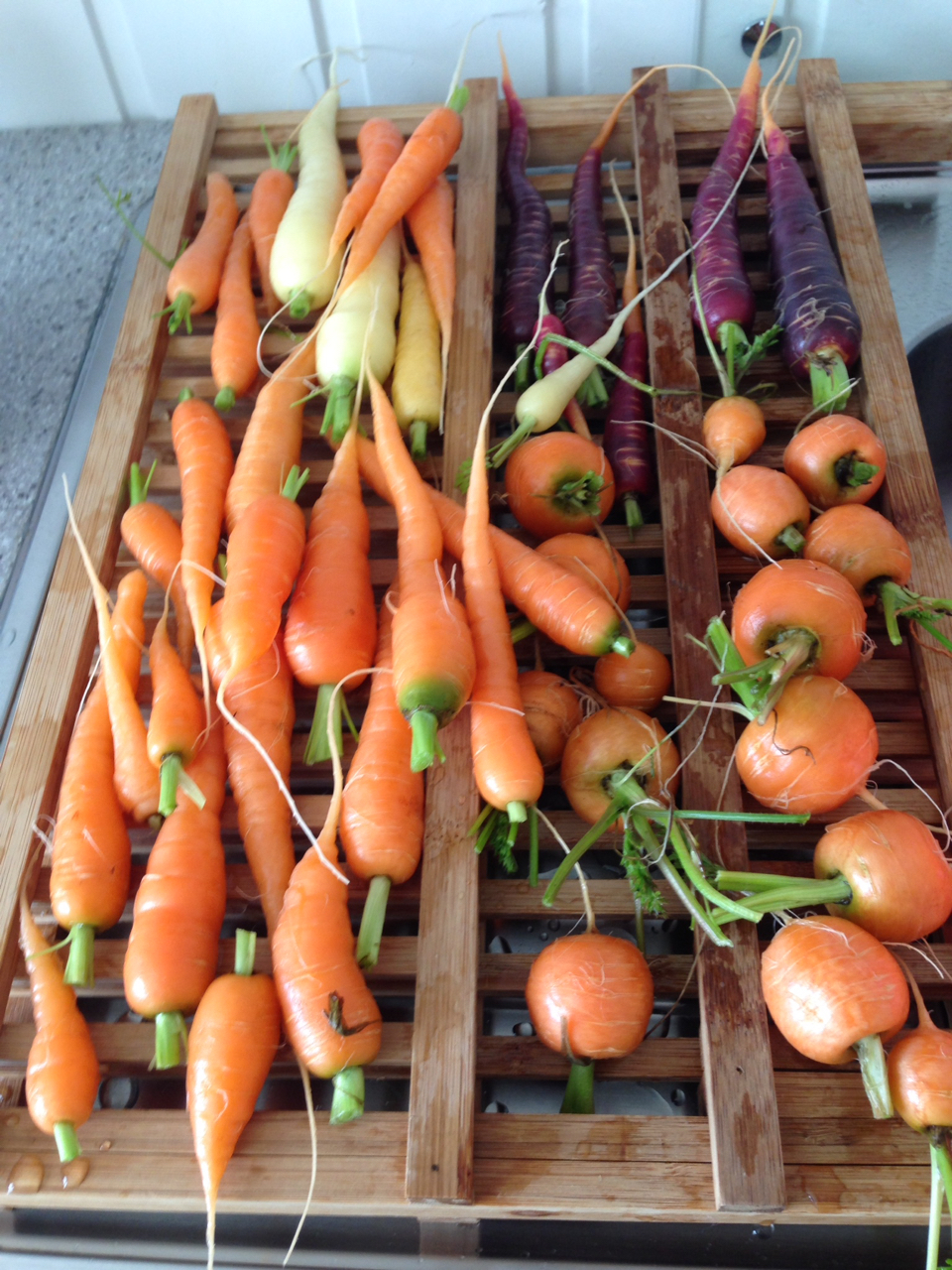 Se så fine de er! Og moro å ha dyrket dem sjøl. Enda har jeg flere å ta opp før vinteren kommer. Jeg hadde ca. 1,5 pallekarm med gulrøtter og har ikke tenkt at det skal bli mer.