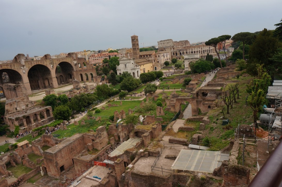 Forum Romanum. I bakgrunnen skimter vi Colosseum
