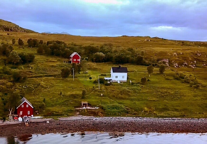 Og slik ser det ut i 2017. Gamle sjåer er revet eller gitt bort. Naustet er nymalt og reparert og huset er i god stand. Rolf Terje har bygget gapahuk nede ved fjæra. Der sitter vi rett som det er og griller og koser oss, gjerne sammen med naboer. Bildet har jeg fått av Jan Hugo Salamonsen, som har fotografert fra drone.