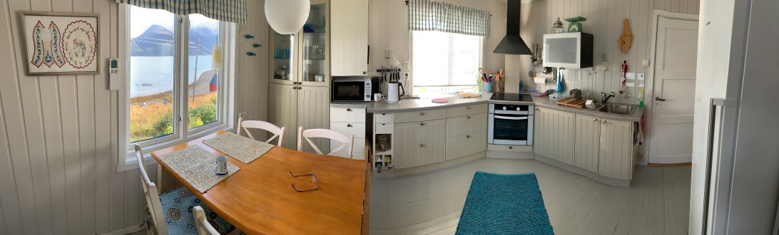 Sommeren 2019. Panoramabilde av kjøkkenet.